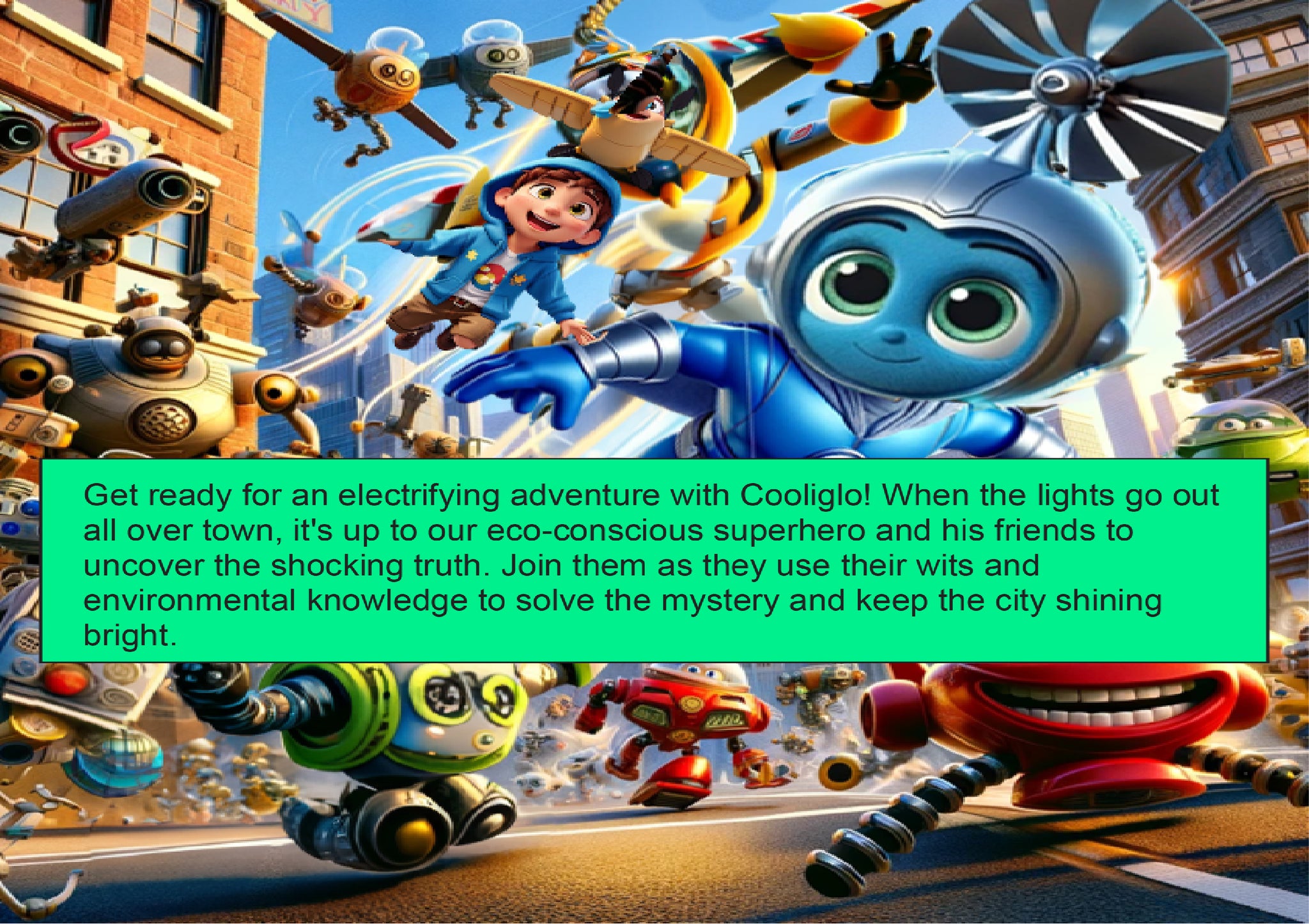 Get ready for an electrifying adventure with Cooliglo! When the lights go out all over town, it's up to our eco-conscious superhero and his friends to uncover the shocking truth. Join them as they use their wits and environmental knowledge to solve the mystery and keep the city shining bright.